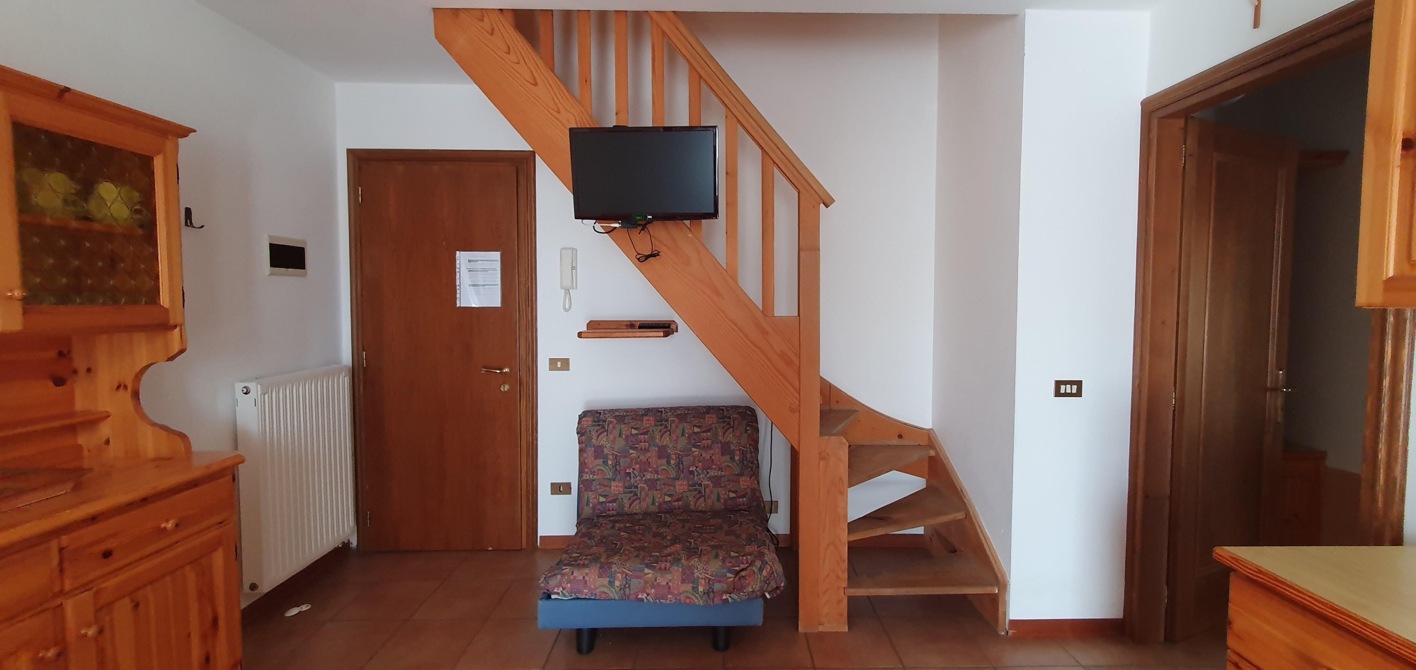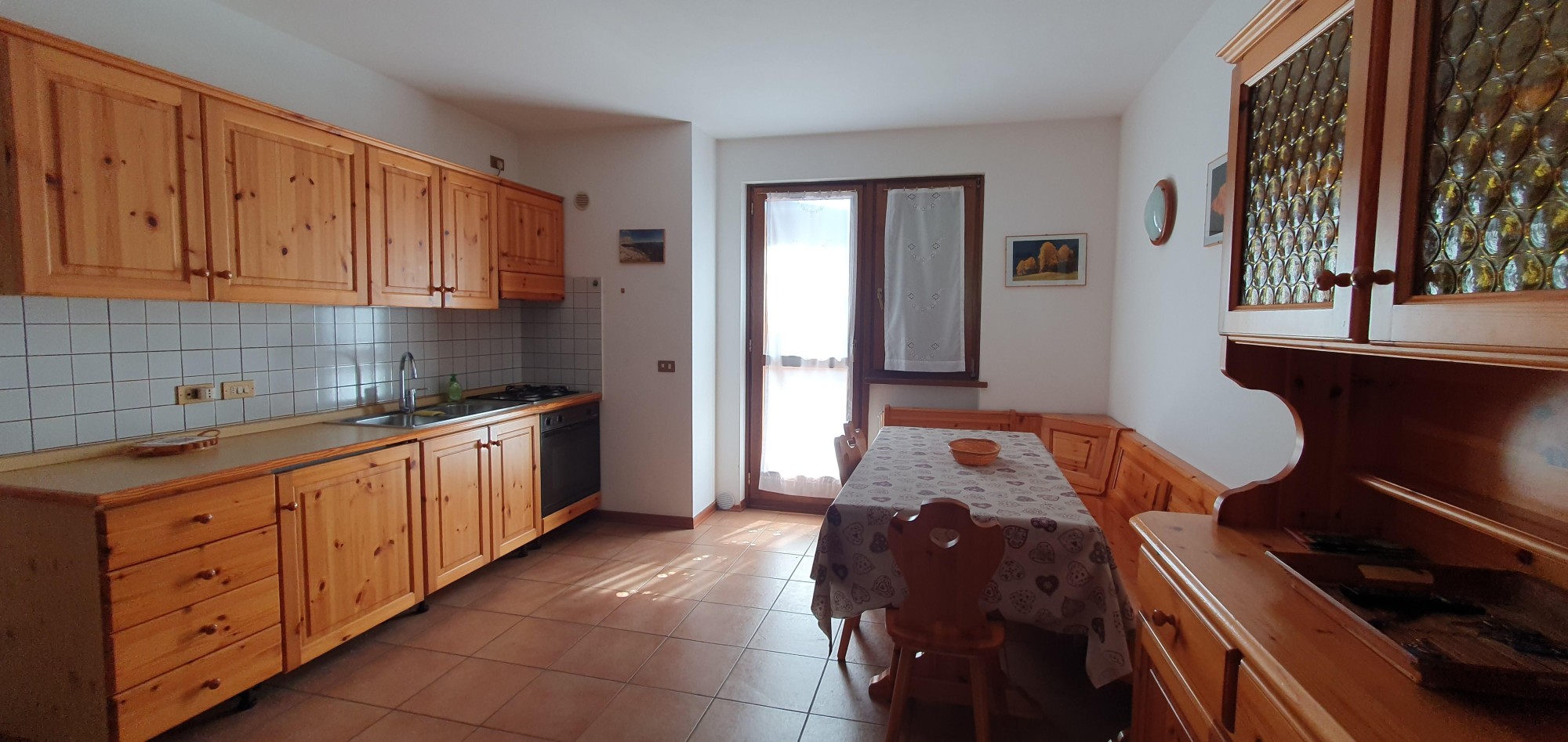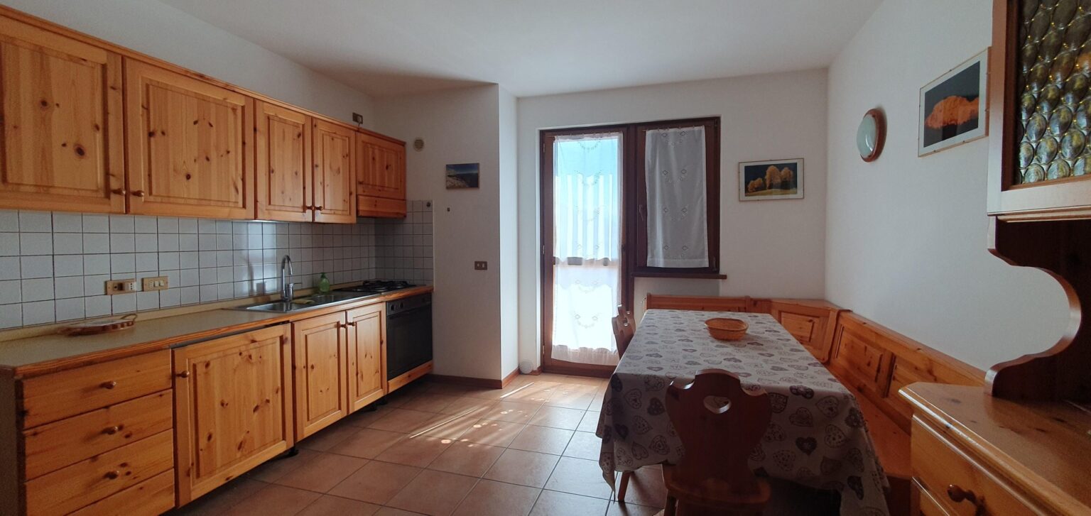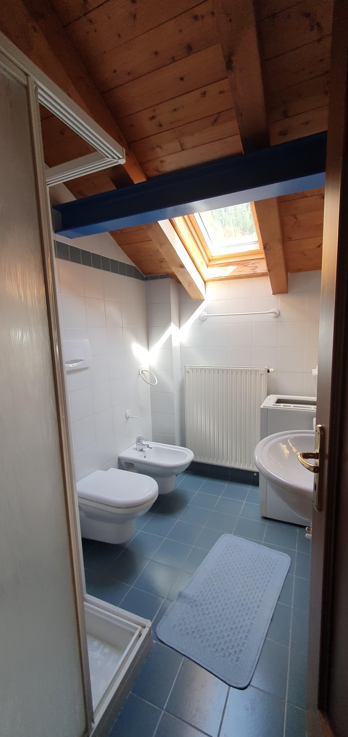 Casa Panciera 16 – Second floor apartment, consisting of a kitchen with 3 gas burners and one electric hob, electric oven, low fridge with 5L freezer, living room with 2-seater sofa, satellite smart TV, a double bedroom, on the attic floor there are two bedrooms: one double and one with two single beds, the bathroom has a shower, toilet and washing machine. Garage parking space, cellar for ski or bicycle storage (max 2/3 bicycles), small and medium-sized pets are accepted, distance from the ski slopes 600 m.