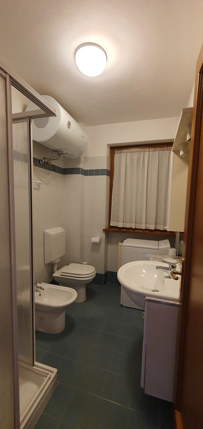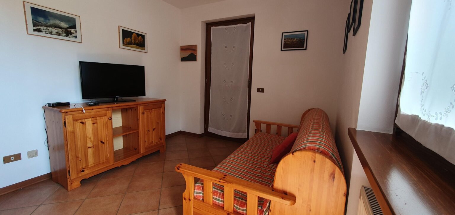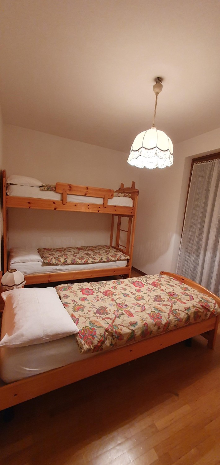 Casa Panciera 13 B First floor apartment, consisting of a kitchen with 3 gas burners and one electric hob, electric oven, low fridge with 5L freezer, living room with sofa bed (2 places), satellite smart TV, in the sleeping area there is a double bedroom, a bedroom with a single bed and a bunk bed, the bathroom has a shower, toilet and washing machine. Parking space in the garage, cellar for ski or bicycle storage (space for 2/3 adult bicycles), small and medium-sized pets are accepted, distance from the ski slopes 600 m.